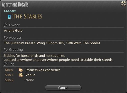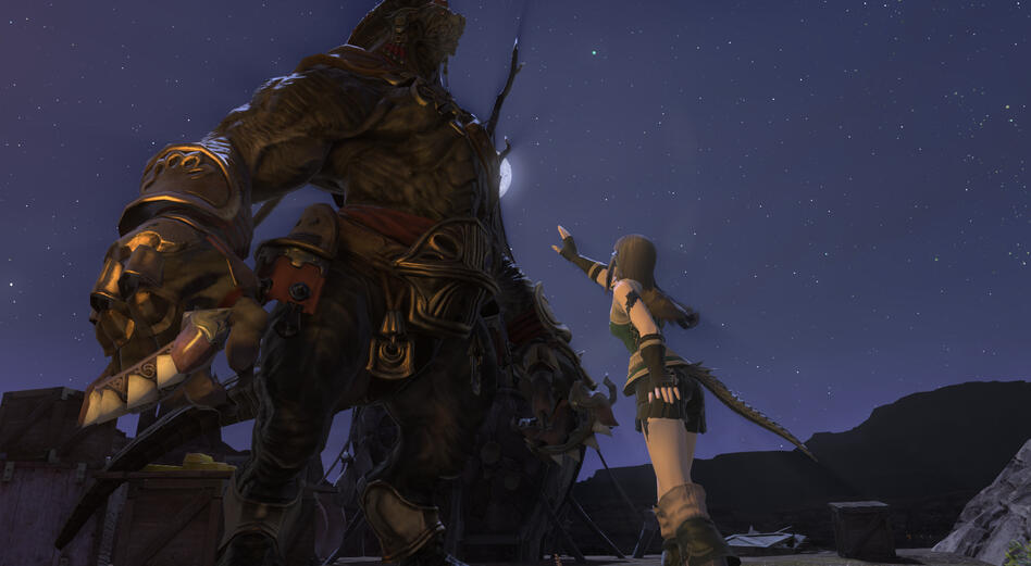 •Ariuna is an adventurer, so it's not unusual to bump into her on a duty, or while getting your gear mended, etc. Or perhaps you're looking to hire one?•Ariuna, of course, smells of horse. Deeply. Someone smelling of horse in a land where folk favor horsebirds over horses may attract curiosity, especially from riding enthusiasts. (If you're also from the Steppes, you may recognize her as a Goro from the smell alone.)•Need help with a steed? Ariuna has a bit of a reputation at the stables of Eorzea... for a few reasons actually, but one of them is that she's lent her skilled stable-hand more than once when help was needed with an unruly steed.•Ari has a habit of ducking out of town periodically to tend to her husband, who can't follow her through the crowded city-states's streets. In a social setting, you might grow curious what she's constantly running off to do.•Ariuna's horse is unusually large for a woman her size. Even with horses being somewhat uncommon in Eorzea, it shouldn't be hard to tell he'd make a more appropriate steed for a Roegadyn woman, or maybe a Hrotgar man.•Au Ra have become a much more common sight in Eorzea in recent years, so it's possible you may have heard certain... rumors about the Goro tribe. On hearing her name, your curiosity may be uncontainable. It's kind of rude to go up to a stranger and ask about their love life, but it's there as an option!•Eorzea is not her home, and Ariuna can often seem a little lost, confused, or even just lonely. If you're the friendly type, maybe you'll want to approach her over that. Or, if you're a fellow Xaela, perhaps you'll understand how lonely it can be out here, and put aside the tribal rivalries of the Steppe to share some company.•Tales of a Dragoon working as a sell-sword and adventurer are sure to catch the eye of some. Of course, Ariuna isn't really a Dragoon, but you'd have to talk to her to clear up that rumor.