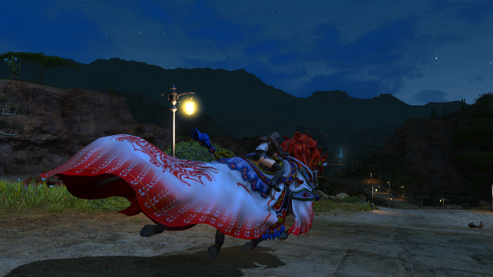 On first arriving in Eorzea, Ariuna came to Ul'dah. She fought as a Gladiator for coin and reputation, hoping to find work as an adventurer, a profession that better suits her wanderlust. She had taken up the sword and shield as a mercenary in Hingashi, often acting as bodyguard to merchants, so she fit right into the Gladiator's Guild.Eorzea has not been as good to her as the stories had led her to believe, with many seeing her as a savage tribeswoman, reacting especially poorly to finding out she is wed to her steed. But she's continued working closely with the Adventurer's Guild, where her commitment to protecting her beloved and clients alike was noticed, earning her a recommendation to the Free Paladin initiative.Ariuna's small body is ill-suited for a life of nonstop shielding, however. Seeking to ease the toll on herself, she began to use the lance again, a discipline she'd abandoned with the Steppe. One might wonder her reasons for ever quitting it; she moves so nimbly with the spear, many mistake her for a Dragoon of the Holy See.